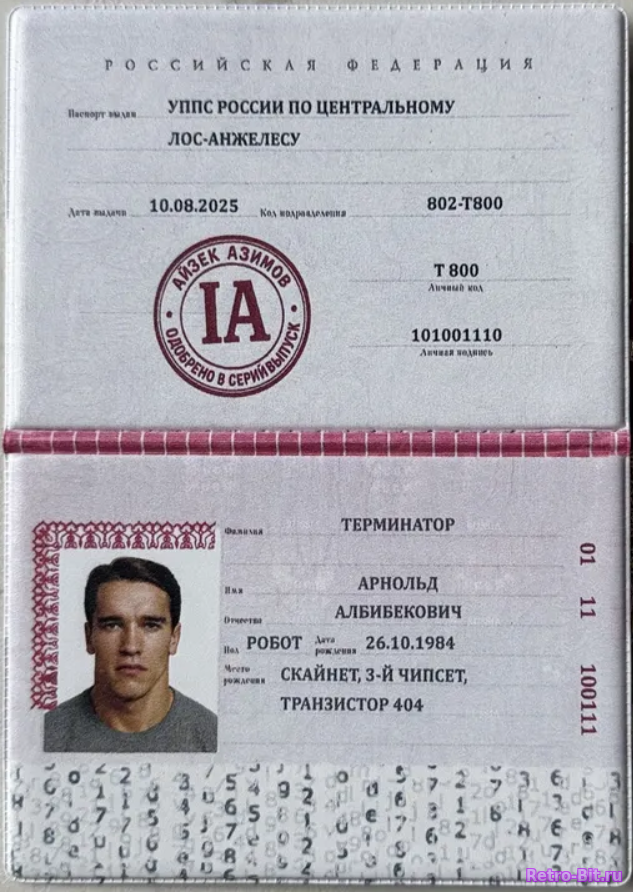 Описание изображения: Обложка паспорта Терминатор Арнольд Албибекович