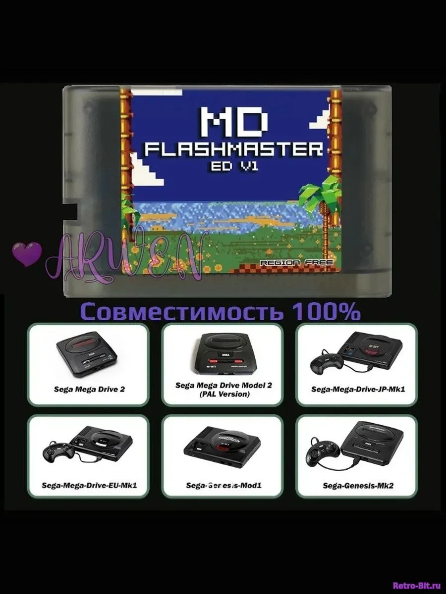 Все ваши любимые игры Sega MD (Genesis) в одном картридже! - Версия софта: v3.6 - Без SD карты, Поддержка до 32GB Micro SD - Для любой приставки. - Играет форматы ромов - Ntsc U / Ntsc J / Pal (Bin. SMD. GEN) - Картридж поддерживает Sega Master System игры. (32X игры пойдут только через Sega 32X — дополнение к игровой приставке Sega Mega Drive!) - Картридж Сохраняет игру в тех местах где в самой игре предусмотрено сохранение! / Без батарейки, пишет сейв-файл на чип. (В Шайнинг Форс 2 сохраняетесь в церкви - и картридж это место записывает в чип. Аналогично и в игре Light Crusader. После включения начинаете игру с готовым сейвом, стартуете оттуда где закончили игру.)