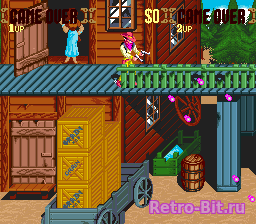Ковбойский боевик от Konami. На выбор вам даются 4 персонажа. Каждая миссия состоит в ликвидации кучи врагов и бандита, за которого назначена награда. Герои вооружены, ясное дело, револьверами, которые стреляют разноцветными пулями (бывает и такое), а также используют динамит, который остается от некоторых врагов. Герои склонны помирать при любом удобном случае, так что легкой игра вряд ли получится. Игра для 1-2 игроков с тремя уровнями сложности.