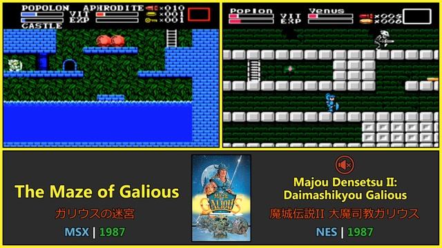The Maze of Galious: Knightmare II is the sequel to Konami's MSX game Knightmare. While the original game was an overhead, vertical scrolling shooter, The Maze of Galious is a side-view, flick-screen platform game.